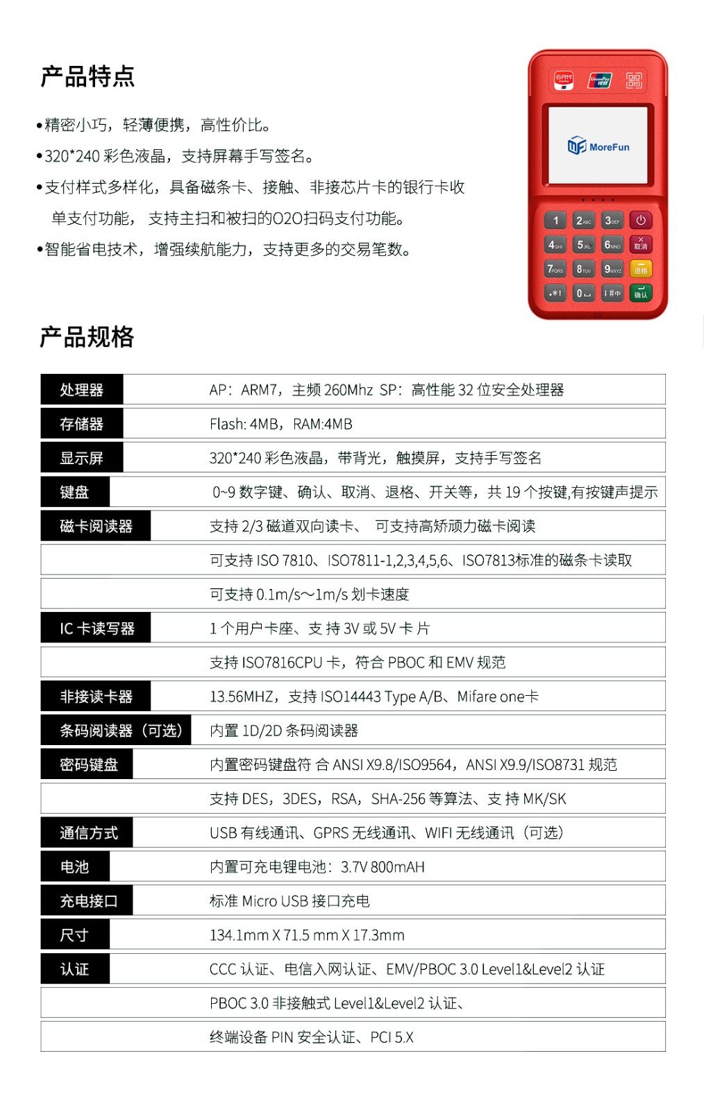 首页>>无极产品中心>>无极手持无线POS 无极电银支付-4G+扫码枪 高配版 * 性能优越:32位高性能ARM11安全CPU;整机通过业内更先进的PCI PED4.X 安全认证及国内受理终端PIN输入设备安全评估检测认证,多项措施保障金融交易的安全;* 时尚外观:外形小巧携带方便,高抗跌落性能、宽工作温度、防水防尘设计、外壳坚固耐刮、户外携带式作业更加耐久可靠。* 通讯备份:支持2G-3G扩展;* 超长续航:3.7V-800毫安稳定续航能力,智能电池管理保证持续工作18小时,待机72小时。 标准配置 返 回